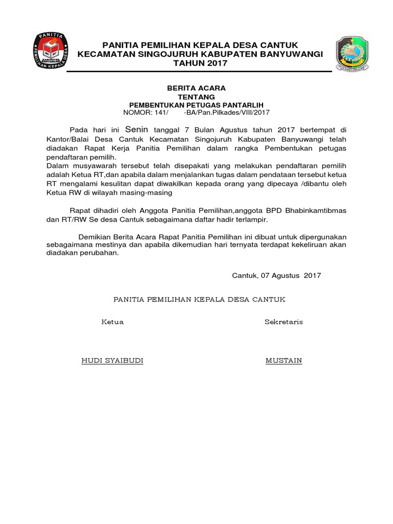 A short summary of this paper. 36 full pdfs related to this paper. Berita acara serah terima surat suara pemilihan ke. Tata tertib warga rt.03 rw.03 bmi Sehubungan berakhirnya masa jabatan pangkat rt05 rw.